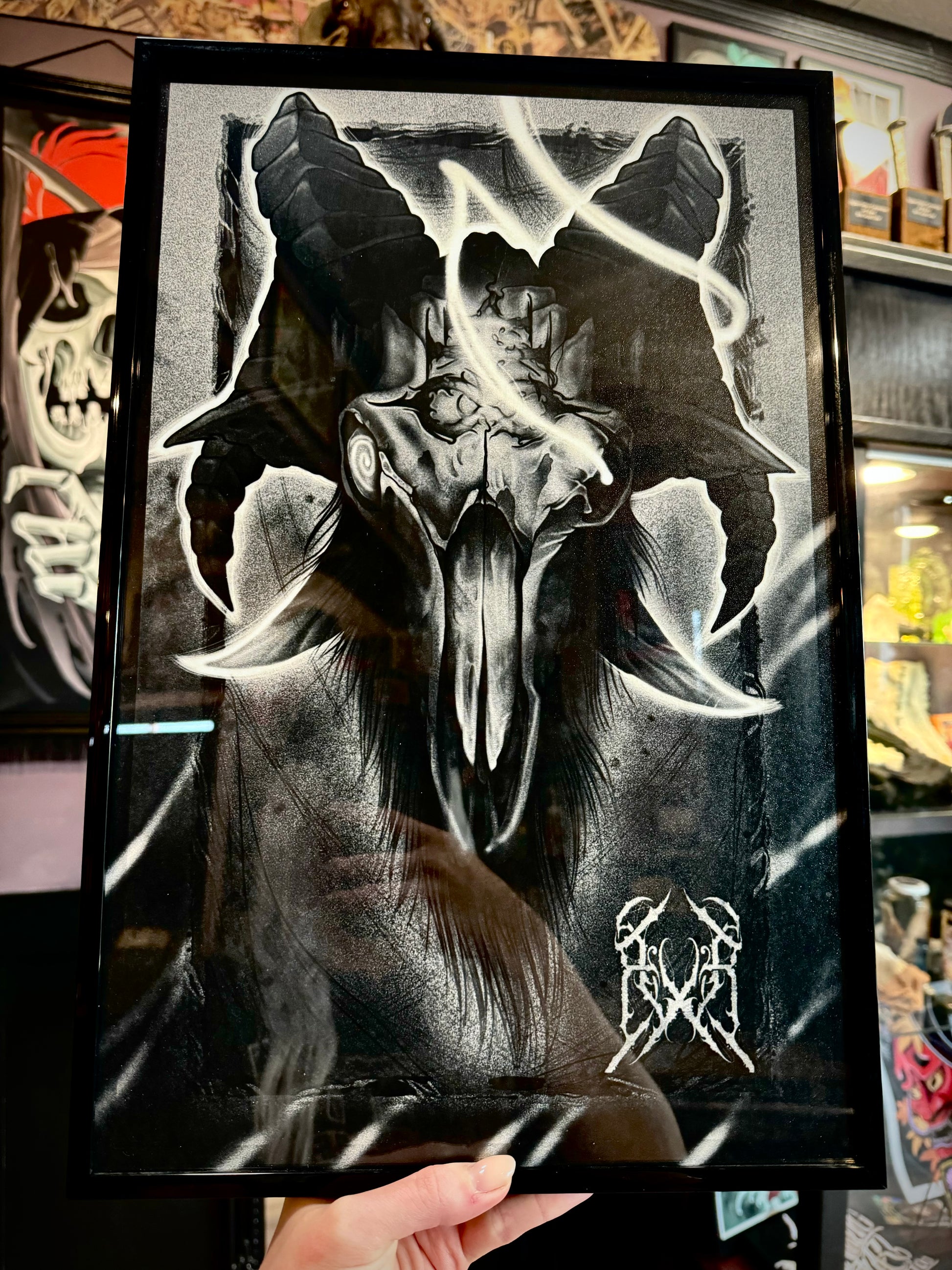Baphomet goat blackwork tattoo style artwork print by tattoo artist Jackson Barlow (@barlows_tattoos). Printed on 11x17" paper.