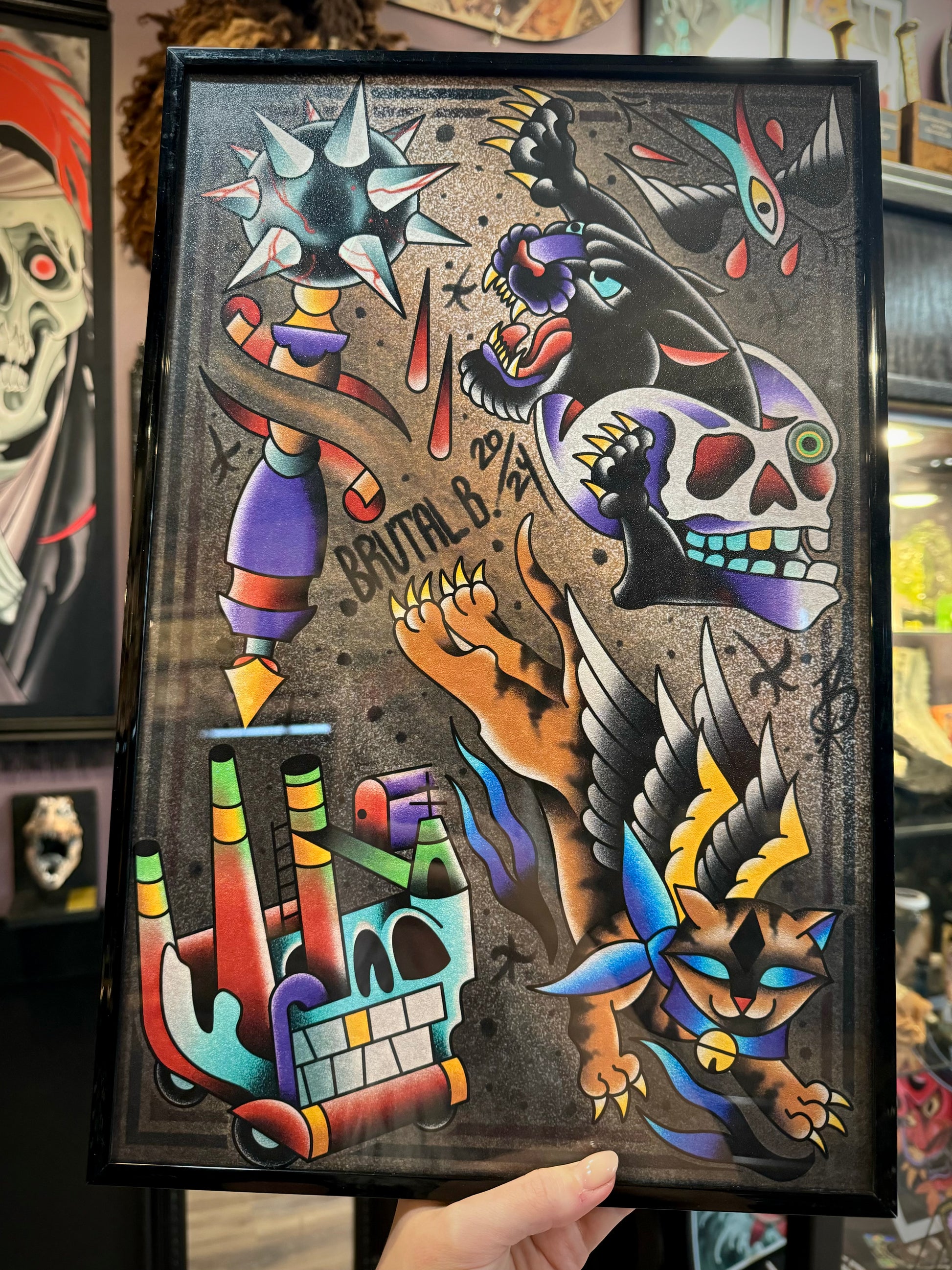 Panther, Skull, Morningstar, Tiger New Traditional Tattoo Flash Art Print 11x17"
